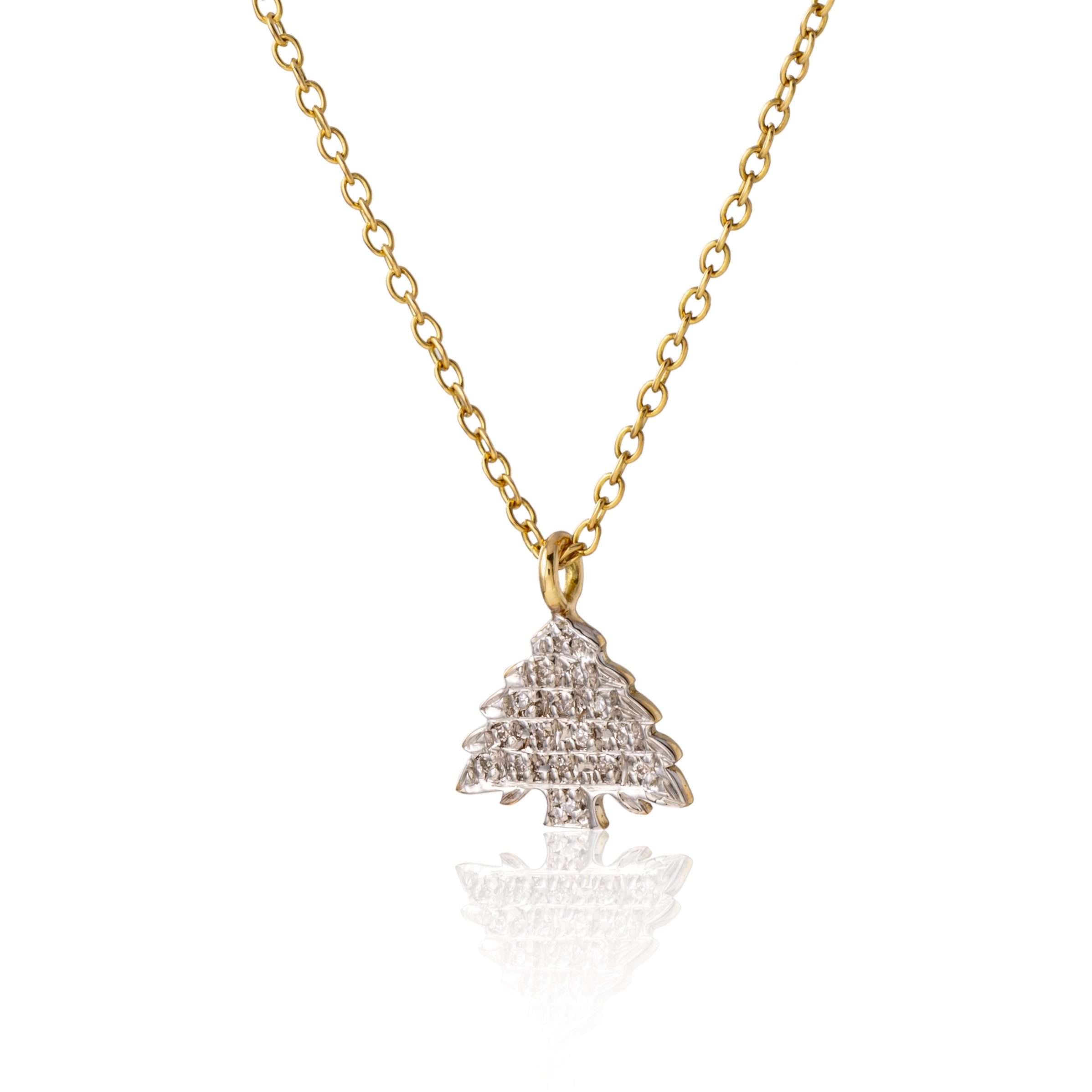 Celebrate the essence of nature with the elegant Diamond Cedar Pendant from Fourmi Jewelry. This stunning pendant showcases a finely detailed cedar tree, symbolizing strength and resilience, adorned with 0.06 carats of sparkling diamonds. The diamonds are meticulously set to create a shimmering effect that captures the light beautifully.