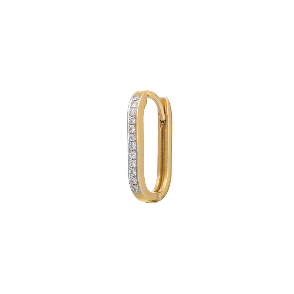 Embrace modern elegance with the Radiant Oval Diamond Earring from Fourmi Jewelry. This exquisite piece features 0.14 carats of dazzling white diamonds, meticulously set within a sleek oval design. Crafted in luxurious 18k yellow gold, this earring exudes contemporary sophistication, making it a versatile addition to your jewelry collection.