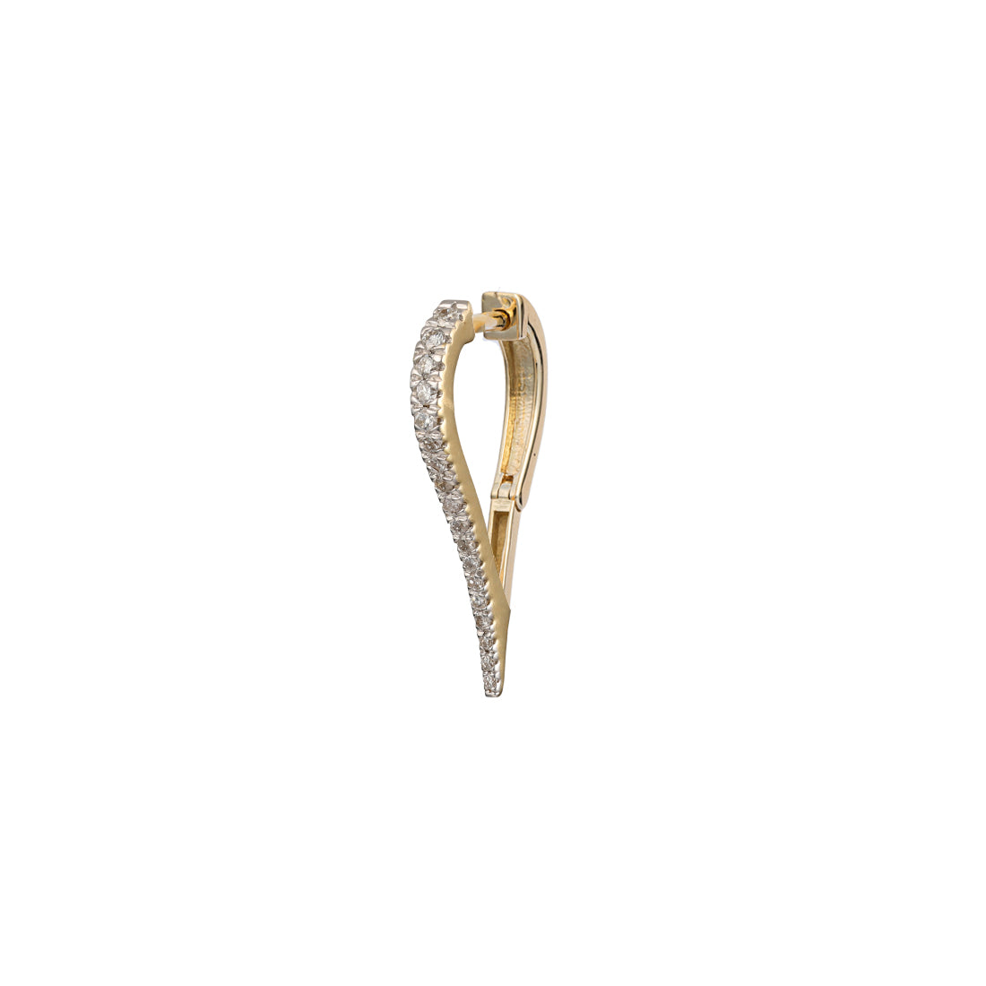 Elevate your elegance with the Radiant Curve Diamond Earring from Fourmi Jewelry. This exquisite piece features 0.13 carats of dazzling white diamonds, meticulously set in a gracefully curved design. Crafted in 18k yellow gold, this earring embodies a perfect blend of modern sophistication and timeless beauty.