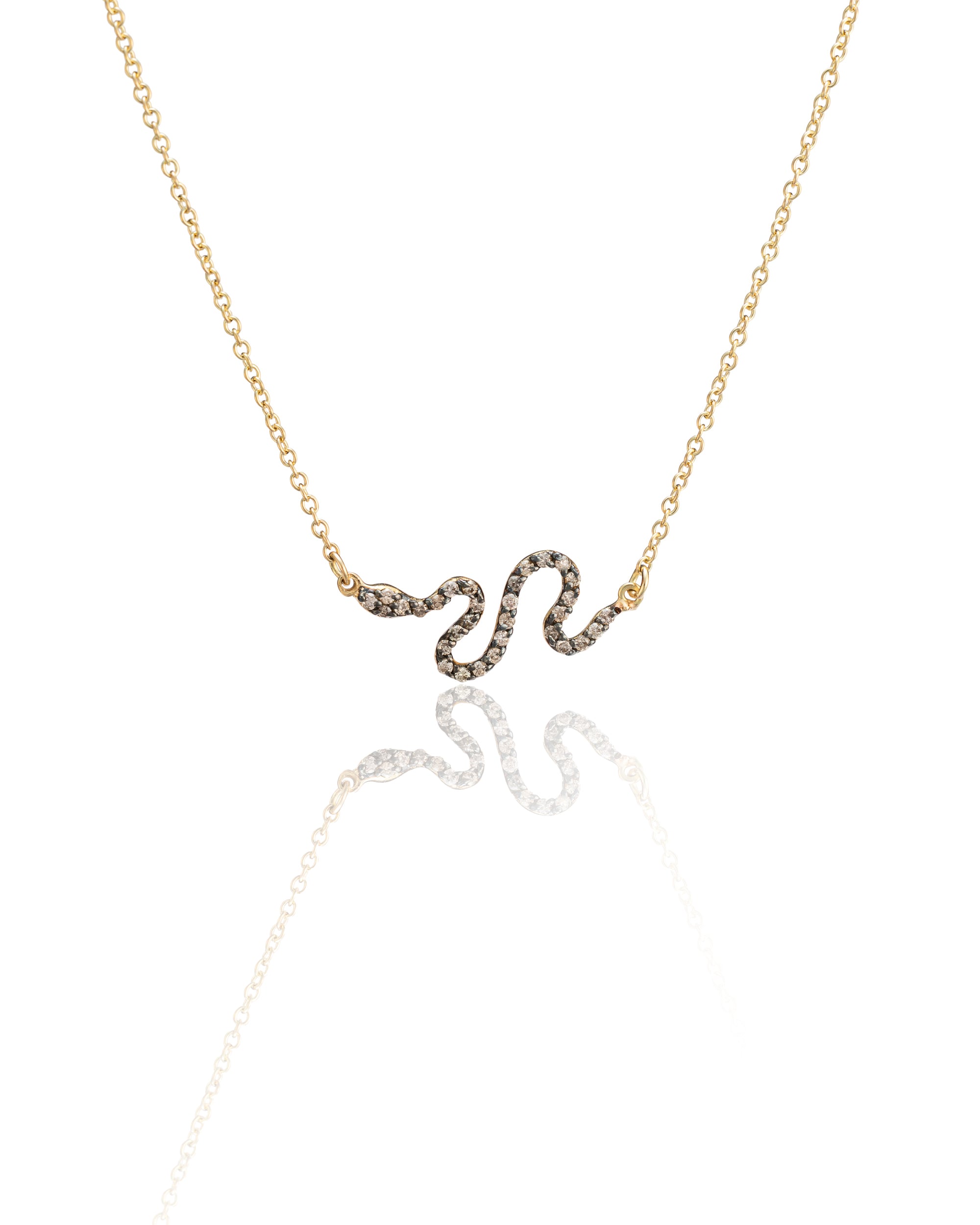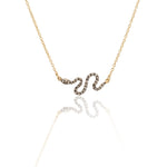 Embrace the allure of the exotic with the Snake Necklace from Fourmi Jewelry. This captivating piece features a gracefully curved snake pendant, encrusted with 0.17 carats of mesmerizing brown diamonds. Set on a delicate gold chain, the snake's sinuous form shimmers with every movement, embodying both elegance and a touch of mystery.