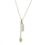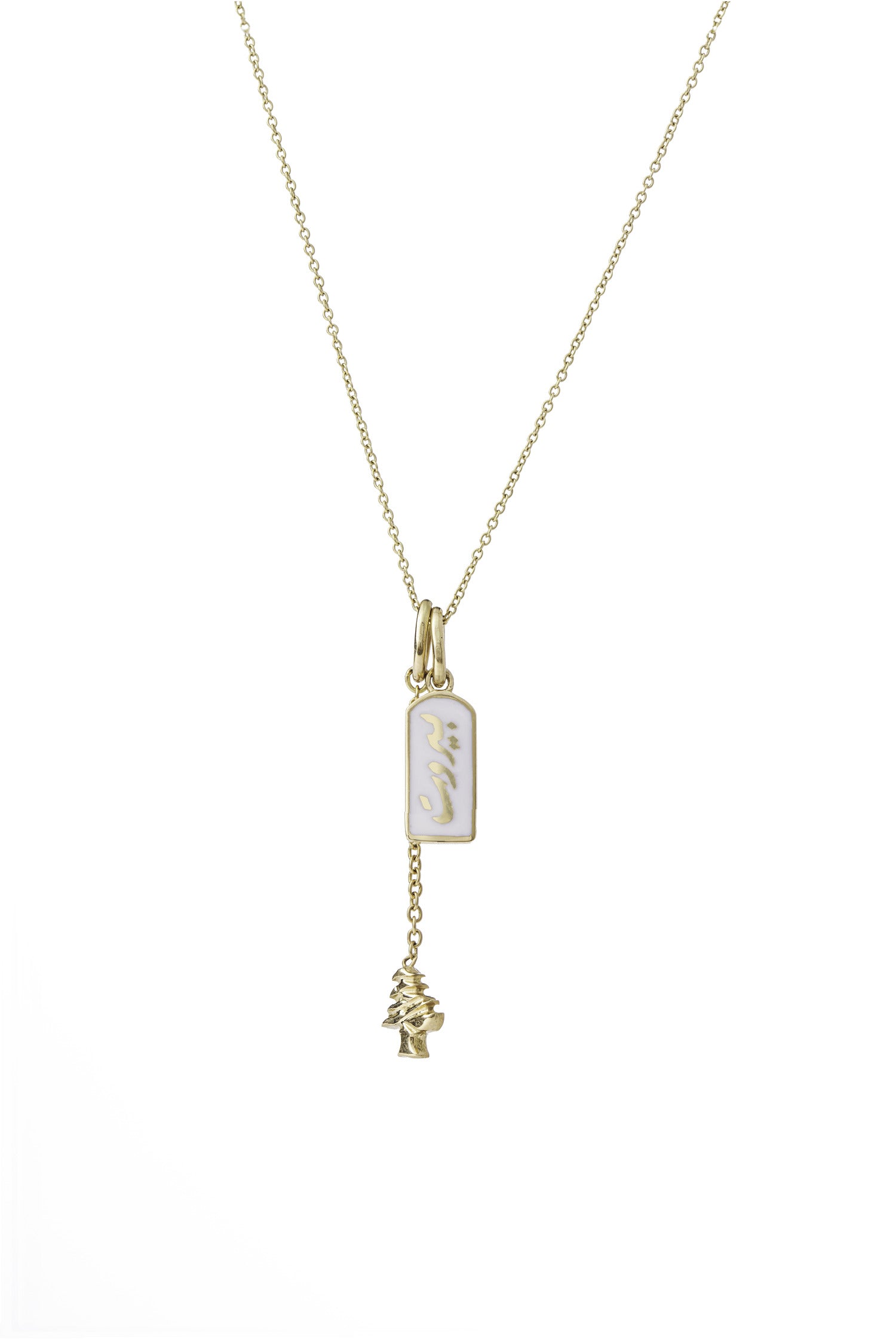 Showcase your love for Lebanon with the Beirut & Cedar Pendant Necklace from Fourmi Jewelry. This exquisite piece features a delicate gold plaque inscribed with "Beirut" in Arabic, complemented by a charming pendant of the iconic Cedar tree, a symbol of Lebanon's heritage and strength.