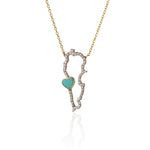 The Lebanon's Diamond Map Necklace is more than just an accessory; it is a statement of pride and a celebration of heritage. The turquoise heart accent adds a unique touch, symbolizing love and connection to the homeland. Perfect for gifting or as a cherished personal piece, this necklace is a beautiful way to keep Lebanon close to your heart. Embrace your heritage with elegance and style with this stunning necklace from Fourmi Jewelry.