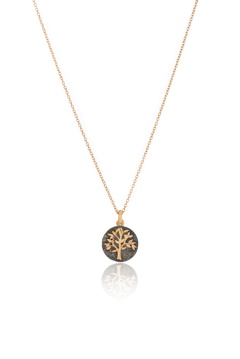 Celebrate the essence of life with the Tree of Life Pendant from Fourmi Jewelry. This elegant pendant features a beautifully detailed tree design set against a dark, textured background, symbolizing strength, growth, and interconnectedness. Crafted in premium gold, the pendant hangs gracefully from a delicate 40cm chain, making it a timeless piece perfect for daily wear or special occasions.
