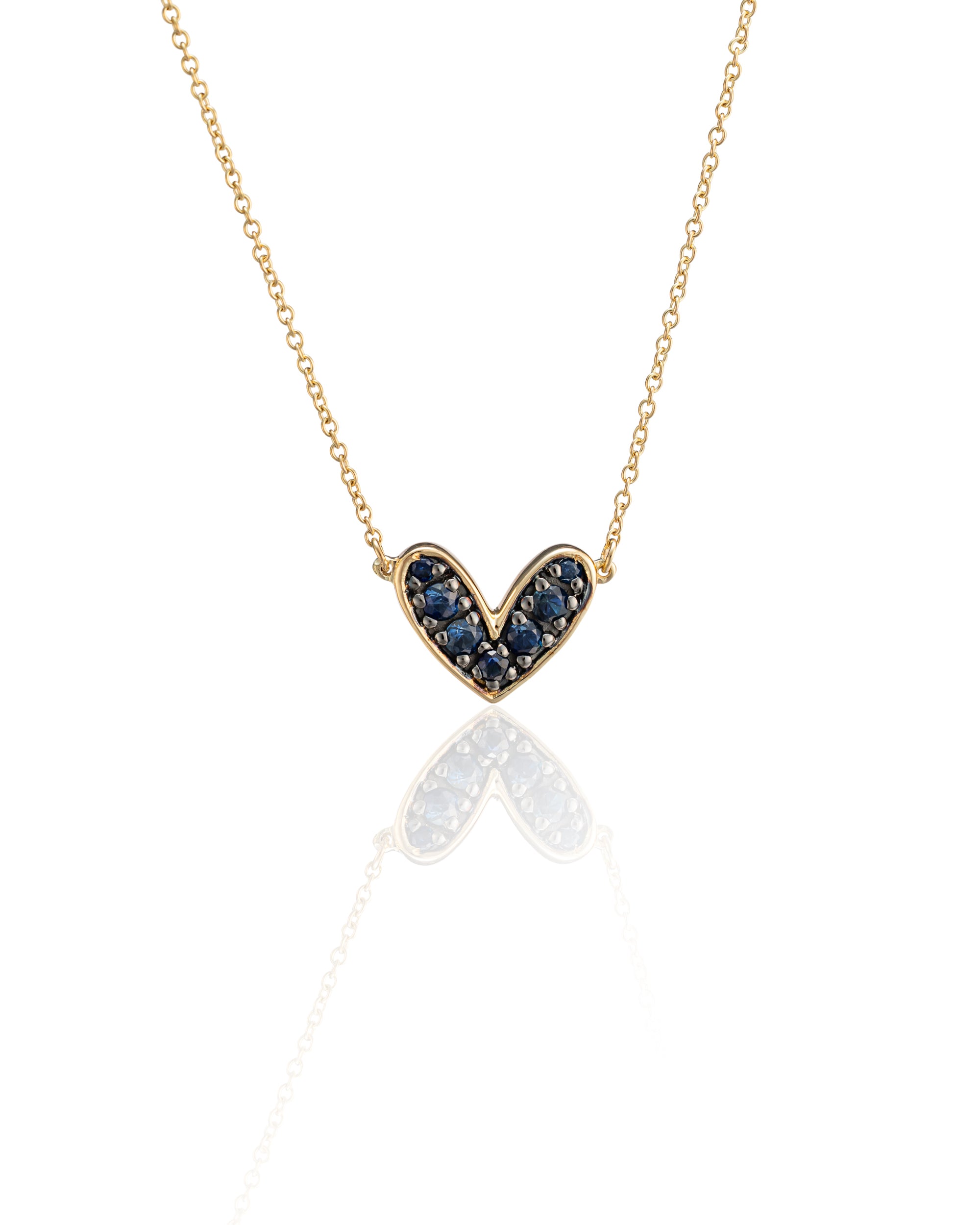 Embrace elegance and romance with the Blue Sapphire Heart Necklace from Fourmi Jewelry. This exquisite piece features a heart-shaped pendant adorned with 0.10 carats of stunning blue sapphires, set in a luxurious gold frame. The deep blue sapphires glisten beautifully, capturing light and adding a touch of sophistication to your look.