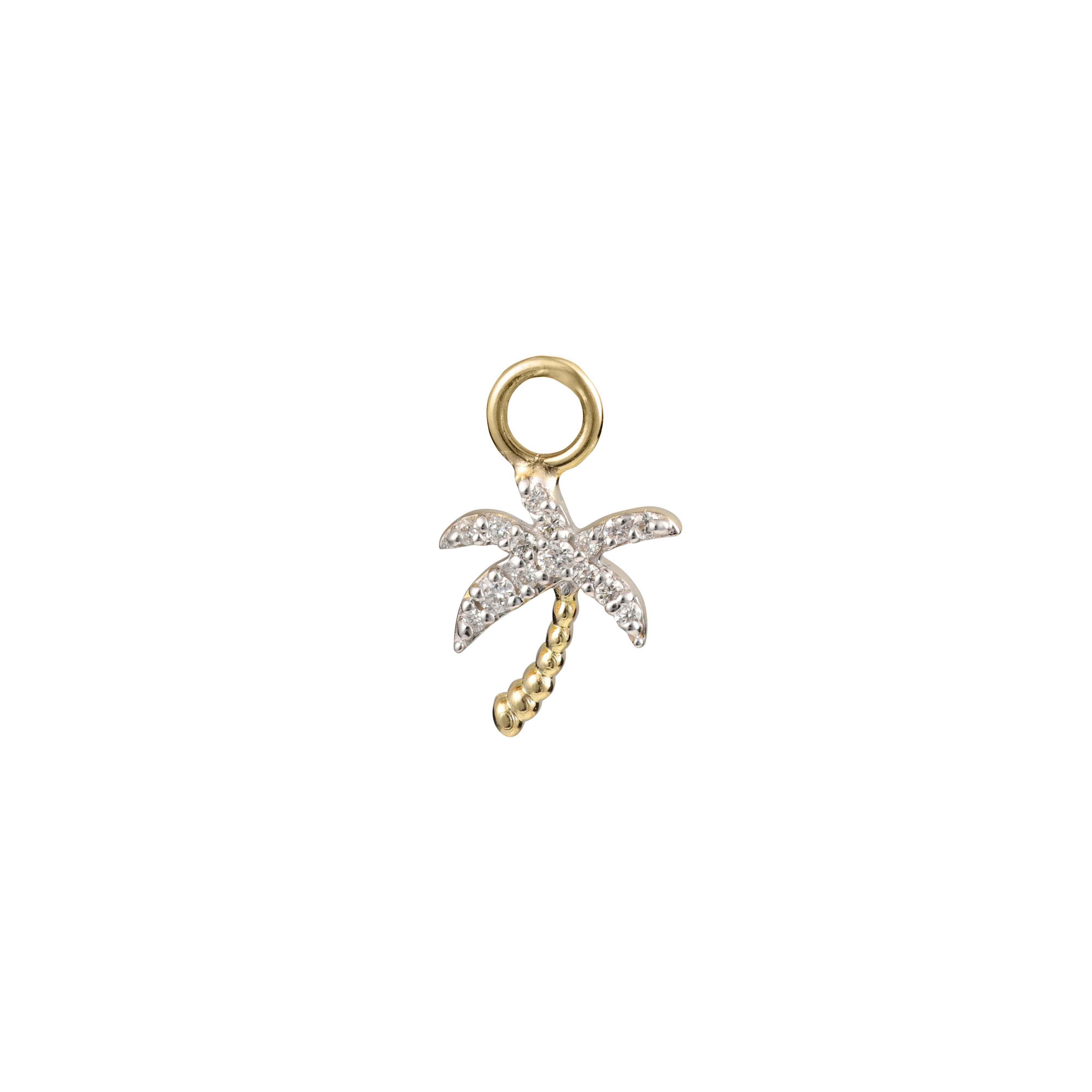 Crafted from the finest gold, the Palm Tree Diamond Dangle Charm is available in yellow, pink, or white gold, allowing you to choose the perfect metal to suit your style. Its versatile design makes it ideal for adding to charm bracelets, necklaces, or earrings, offering endless possibilities for personalization and elegance.